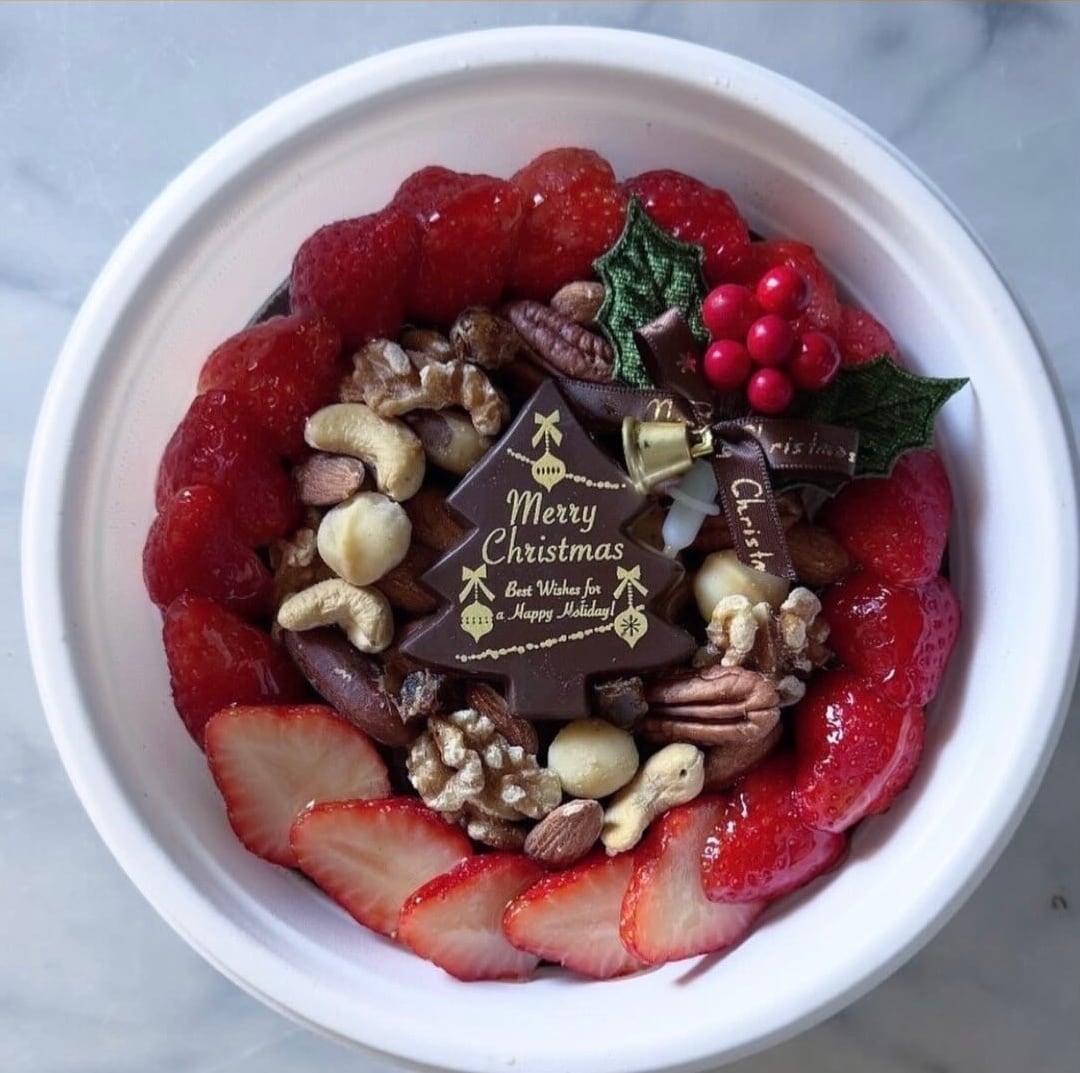 ●トッピング:ストロベリー、オーガニックピーナッツバター、アーモンド・ウォールナッツ・カシューナッツ・マカダミアナッツ・ピーカンナッツ・ブラジルナッツ、デーツ、クリスマスの飾り