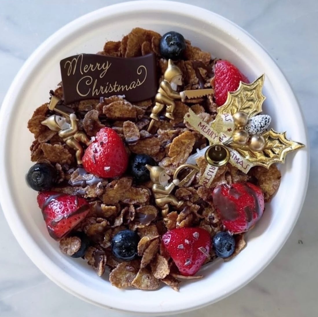 ●トッピング:ストロベリー、ブルーベリー、バナナ、チョコシリアル、カカオパウダー、カカオニブ、チョコソース、クリスマスの飾り